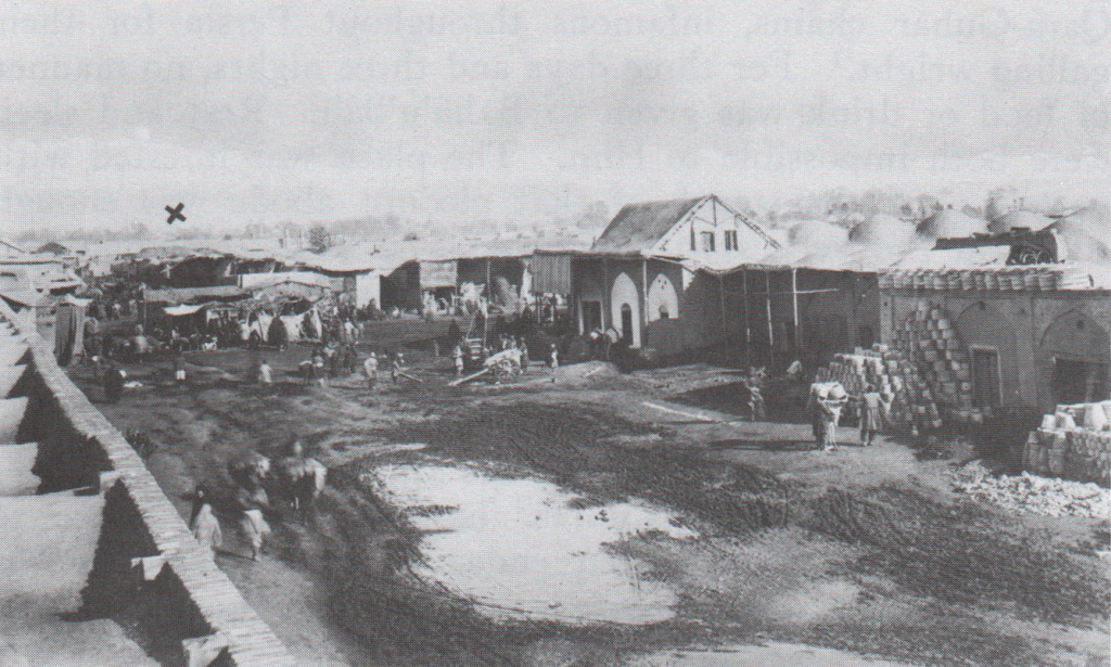 A southern section of Tihrán where criminals were hanged and where many Bahá’í martyrdoms took place. Síyáh-Chál site in the far distance is marked with X. Archival photo. 14_ACT16