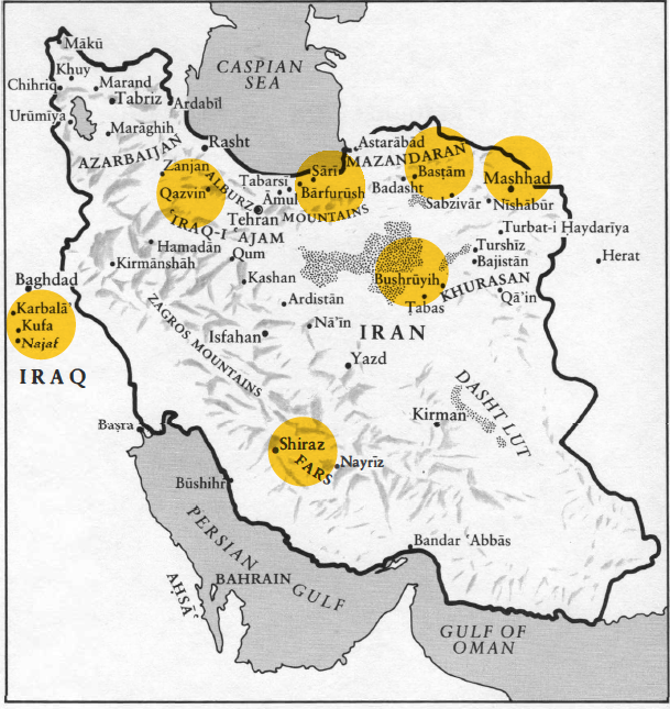 Persia/Írán in the 1800s [certain towns/areas of interest highlighted] 94ACT1